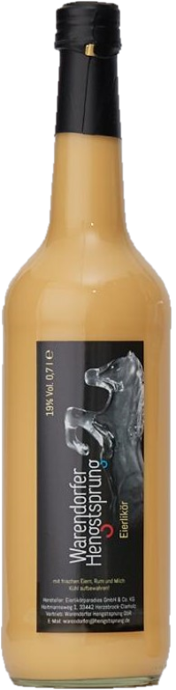 Mit dem beliebten Warendorfer Hengstsprung Eierlikör holen Sie sich Tradition und Geschmack aus der Pferdestadt Warendorf nach Hause. Zwei Flaschenvarianten stehen zur Auswahl: